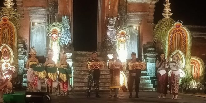 BADUNG – Dandim 1611/Badung yang diwakili Pasilog Dim 1611/Badung Kapten Inf Nyoman Lasiana,S.sos,.M.M didampingi Babinsa Serma wayan Budiastra menghadiri kegiatan pembukaan lomba Bapang Barong dan Makendang Tunggal  katagori  Regeneration dan Super Star.