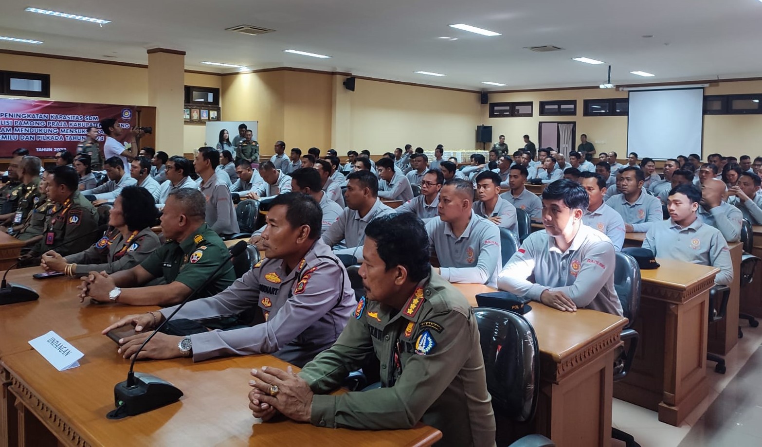 Hadir dalam kegiatan Kepala BKPSDM Prov Bali, Dandim 1611/Bdg diwakili Plh. Kaur Bakti TNI Siterdim, Kapolres Badung diwakilkan, Pendamping Widyaiswara dari BKPSDM Prov Bali, Kepala BKPSDM Kab. Badung, Para Pejabat Staf Satpol-PP Kab. Badung dan Para Peserta Pengawai Non ASN Satpol PP se-Kab. Badung.