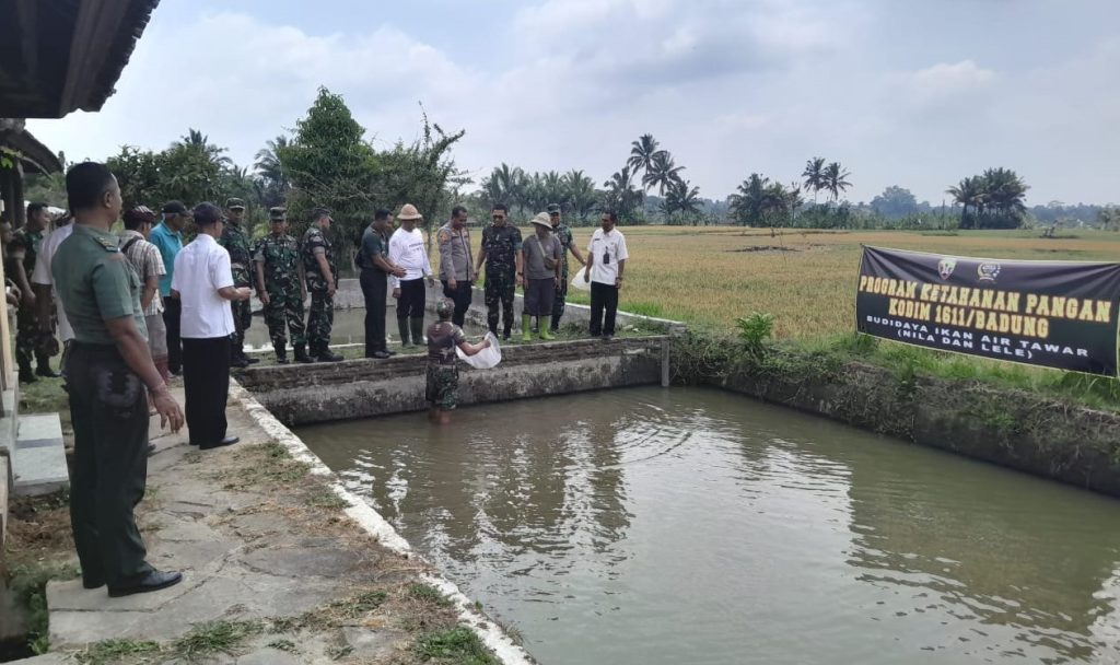Setelah kegiatan Vidcon tersebut, Dandim 1611/Badung Kolonel Arh Teguh Waluyo, S.I.P. yang didampingi Kadis Perikanan, Kadis Pertanian dan Pangan Kab. Badung serta Kanit Reskrim Polsek Petang tampak melaksanakan tabur benih 30.000 ekor ikan Nila di Subak Brigiding.