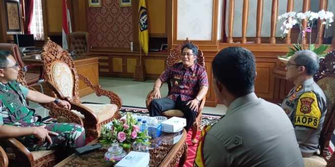 Badung -Untuk meningkatkan tali silahturahim dalam menciptakan kerjasama yang baik demi terwujudnya keamanan, ketertiban dan meningkatkan kesejahteraan masyarakat di Kabupaten Badung, Dandim 1611/Badung Kolonel Inf. Dody Triyo Hadi S. Sos M. Si bersama Kapolresta Denpasar AKBP. Bambang Yugo Pamungkas., S.H., S.IK., M.Si, dan Kapolres Badung AKBP Leo Dedy Defretes, S.I.K., S.H., M.H., beraudensi dengan Pemerintah Kabupaten Badung dan diterima langsung oleh Bupati Badung I Nyoman Giri Prasta S. Sos yang bertempat di Ruang Kerja Bupati Badung jalan raya Sempidi kecamatan Mengwi kabupaten Badung. Selasa (29/03/22).