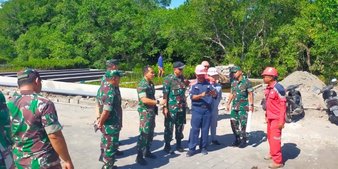 Denpasar – Dandim 1611/Badung Kolonel Inf. Dody Triyo Hadi mendampingi Danrem 163/Wsa Brigjen TNI Choirul Anam S.E.M.M meninjau Penataan Kawasan Konservasi Hutan Manggrove Tahura Ngurah Rai yang merupakan salah satu Venue Kunjungan Delegasi G20 di Areal Pura Candi Narmada Desa Pemogan Kec.Denpasar Selatan Kota Denpasar. Selasa (07/06/22)`