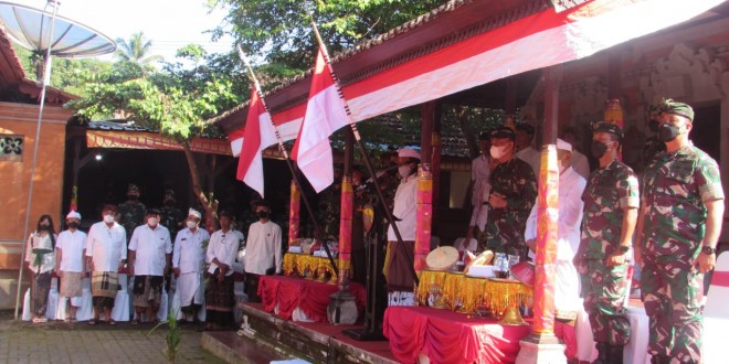 Badung – Dandim 1611/Badung Kolonel Inf. Dody Triyo Hadi S. Sos. M. Si mendampingi Pangdam IX/Udayana Mayjen TNI Sonny Aprianto S.E.M.M dalam acara Pitra Puja dalam rangka HUT Kodam IX/Udayana ke 65 Tahun yang diselenggarakan oleh Bintaldam IX/Udayana diikuti sekitar 100 orang bertempat di Puri Pahlawan Nasional I Gusti Ngurah Rai Desa Adat Carangsari Kec Petang Kab Badung.Senin (23/05/22).