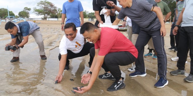 DENPASAR – Dandim 1611/Badung Kolonel dody Triyo Hadi, S.Sos.,M.Si mendampingi Pangdam IX/Udayana Mayjen TNI Sonny Apriyanto S.E.M.M dalam kegiatan Jalan Sehat dan pelepasan bibit tukik bersama Dan/Ka Jajaran Kodam IX/Udayana yang di hadiri sekitar 60 orang di Pantai Matahari Terbit Sanur Denpasar Selatan Kota Denpasar. Kamis (01/09/22).