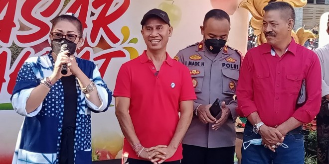 Denpasar – Dandim 1611/Badung yang diwakili Kasdim 1611/Badung Letkol Inf. Pedro Soares Sarmento menghadiri kegiatan pasar murah di Krisna Oleh Oleh Jln Nusakambangan Br Pengiasan Ds Dauh Puri kauh Kec Denbar Kota Denpasar. Minggu (05/06/22)