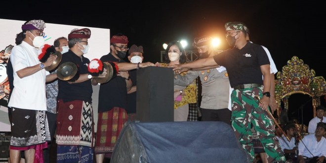 Denpasar – Penutupan Denpasar Festival Ke 14 Tahun 2021 dengan tema ”Arsa Wijaya” diadakan di Obyek Wisata Taman Inspirasi Muntig Siokan Pantai Mertasari Desa Sanur Kauh Kec.Denpasar Selatan,Kota Denpasar. Kamis (23/12/2021)
