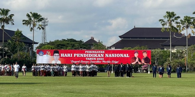 BADUNG – Dandim 1611/Badung yang diwakili Pabung Dim 1611/Badung Mayor Inf Wayan Suwintantra menghadiri acara Peringatan Hari Pendidikan Nasional tahun 2023 dengan tema “Bergerak Bersama Semarakan Merdeka Belajar” yang dipimpin oleh Sekda Kab. Badung I Wayan Adi Arnawa, S.H dan diikuti sekitar 300 orang bertempat di Lapangan Pusat Pemerintahan Mangupraja Mandala Kabupaten Badung Jl. Raya Sempidi, Kec. Mengwi Kab. Badung. Selasa (02/05/23).