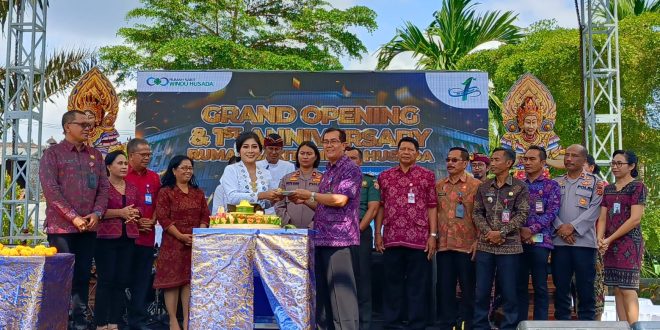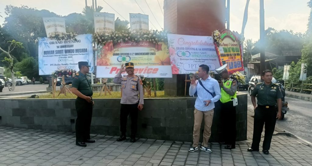 BADUNG – Danramil 1611-05/Abiansemal Kapten Inf Komang Suardika didampingi Batuut Peltu Dewa Agung Putra dan Babinsa Sertu Ketut Budiyasa turut andil dalam kegiatan Grand opening & anniversary 1 st Rumah Sakit Windu Husada.