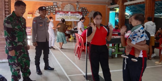 BADUNG – Guna menunjang kesehatan ibu dan anak inilah yang dilakukan Babinsa Koramil 1611-05/Abs Kodim 1611/Badung Peltu Dewa Agung Putra Ardiyasa bersama-sama dengan Bhabinkamtibmas selalu bersinergi dalam mendampingi kegiatan Posyandu Balita dilaksanakan oleh Puskesmas 1 Abiansemal dipimpin oleh Bidan Sumiati.Amd.Keb. bertempat di Balai Desa Ayunan Kecamatan Abiansemal Kabupaten Badung. Kamis (15/06/23).