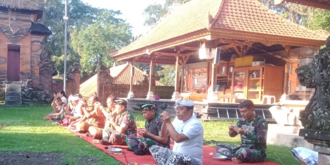 BADUNG – Dalam rangka proses pembuatan Pompa hidram air bersih Dandim 1611/Badung Kolonel Inf Dody Triyo Hadi S. Sos., M. Si menghadiri acara doa bersama yang di Puput  Mangku Tapakan Dalem Desa Adat Ayunan I Made Losi yang diikuti sekitar 20 bertempat di Pura Dalam Br.Badung Desa Ayunan Kec Abiansemal Kab Badung. Senin (12/09/22).