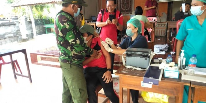 Pada kesempatan yang sama Serka Putu Putra Antara juga berpesan kepada warga penerima vaksin, meskipun sudah divaksin diharapkan tetap mematuhi protokol kesehatan yang sudah dianjurkan pemerintah (Tegas babinsa)
