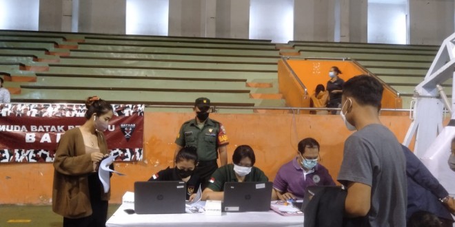 Badung – Babinsa Koramil 1611-03/Kuta Serma Sriyanto bersinergi dengan Bhabinkamtibmas memantau kegiatan Vaksinasi Covid 19 Dosis 1, 2 dan Booster untuk Masyarakat umum yang diselenggarakan oleh Binda Bali bekerjasama dengan Pemuda Batak Bersatu PAC Kuta utara, Satgas Pemuda Batak bersatu, dengan Dinkes Badung dan Puskesmas Kuta utara di Gedung GOR Buana Krida Kel Kerobokan kaja, kec Kuta utara, Kab. Badung. Kamis (07/07/22)