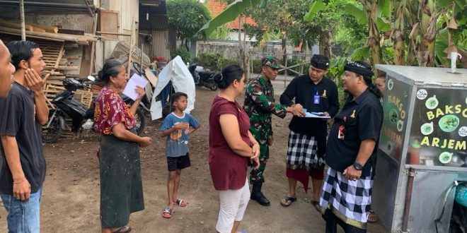 BADUNG – Dalam upaya menjaga stabilitas kenyamanan dan keamanan serta mewujudkan masyarakat yang tertib administrasi, Babinsa Koramil 1611-08/Kuta Selatan Serda Lalu.Samsul Hakim dan Serda Made Cahya bersama Bhabinkamtibmas mengikuti kegiatan Sidak Penduduk pendatang Non Permanen yang bertempat di Lingkungan Celuk, Desa Adat Bualu, Kel. Benoa Kec. Kuta Selatan Kabupaten Badung. Minggu (22/10/23).
