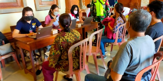 BADUNG – Babinsa Koramil 1611-04/Mengwi Sertu Manuel Da Costa bersinergi dengan Bhabinkamtibmas mendampingi tenaga kesehatan saat pelaksanaan vaksin tahap 3 Booster untuk masyarakat masyarakat umum di Br. Sebita Kelurahan Sempidi Kec. Mengwi Kab. Badung. Senin(01/08/22).