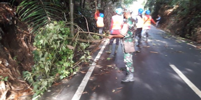 Akibat cuaca yang ektrim tidak hanya menyebabkan pohon tumbang, kejadian tersebut sudah diatasi dengan gotong-royong bersama pemerintah Desa dan masyarakat serta dibantu Babinsa setempat.