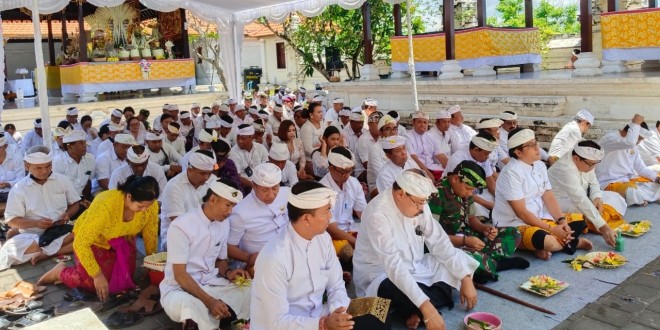 BADUNG – Dandim 1611/Badung Kolonel Inf Dody Triyo Hadi, S.Sos., M.Si. didampingi Kasdim 1611/Badung Letkol Inf Pedro Soares S dan Perwira Staf serta Para Danramil Kodim 1611/Badung melaksanakan Upacara Ngastiti dalam rangka penyelenggaraan Presidensi G20 tahun 2022 dipuput oleh Ida Pedande Gede Ketut Putra Timbul dari GriyaTtimbul Mengwi dan hadiri sekitar 75 orang. Kegiatan diselenggarakan di Pura Geger Dalem Pemutih, Desa Adat Peminge, Kec. Kuta Selatan, Kab. Badung. Selasa (11/10/22).
