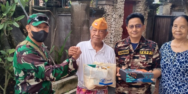 DENPASAR – Babinsa Koramil 1611-02/Densel melaksanakan anjangsana membagikan bingkisan Sembako dalam rangka memperingati HUT TNI ke-77.
