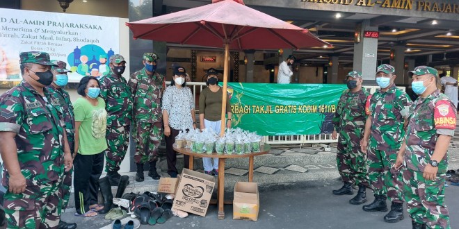 Denpasar – Kodim 1611/Badung membagikan Takjil Gratis kepada Masyarakat di Bulan Ramadhan yang bertempat di Masjid AL- Amin Prajaraksaka kepaon Denpasar selatan Kota Denpasar.Minggu(24/04/22).
