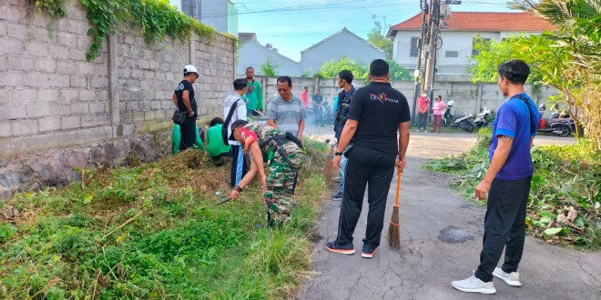 Jaga Kebersihan Lingkungan Babinsa Kodim 1611/Badung Bersama Perangkat Kelurahan Laksanakan Kerja Bakti