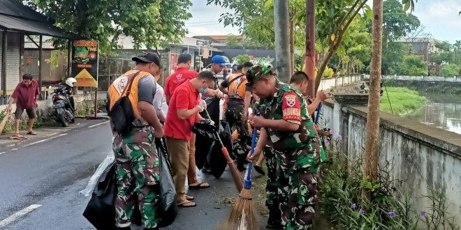 BADUNG – Wujudkan kebersihan lingkungan Danramil 1611-03/Kuta Mayor Arm Putu Arimbawa didampingi anggota Koramil ikut serta dalam pelaksanaan karya bakti yang diselenggarakan oleh Kelurahan Legian Kecamatan Kuta bekerjasama dengan TNI Polri yang diikuti sekitar 150 orang bertempat di Tukad mati Kelurahan Legian Kec Kuta Kab Badung. Jum’at (23/09/22).