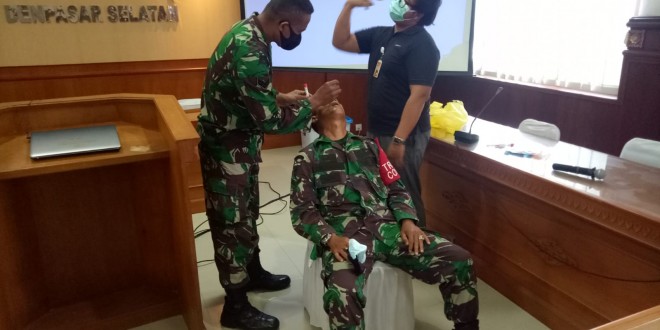 Denpasar – Tingginya kasus terpapar Covid-19 harus diikuti dengan peningkatan upaya untuk melakukan antisipasi dan penanggulangan. Kodim 1611/ Badung melalui Jajarannya Koramil 1611-02/Densel bersama instansi terkait menggelar pelatihan petugas swab, guna mengintensifkan Tracing yang merupakan salah satu cara untuk memotong mata rantai penyebaran Covid-19.