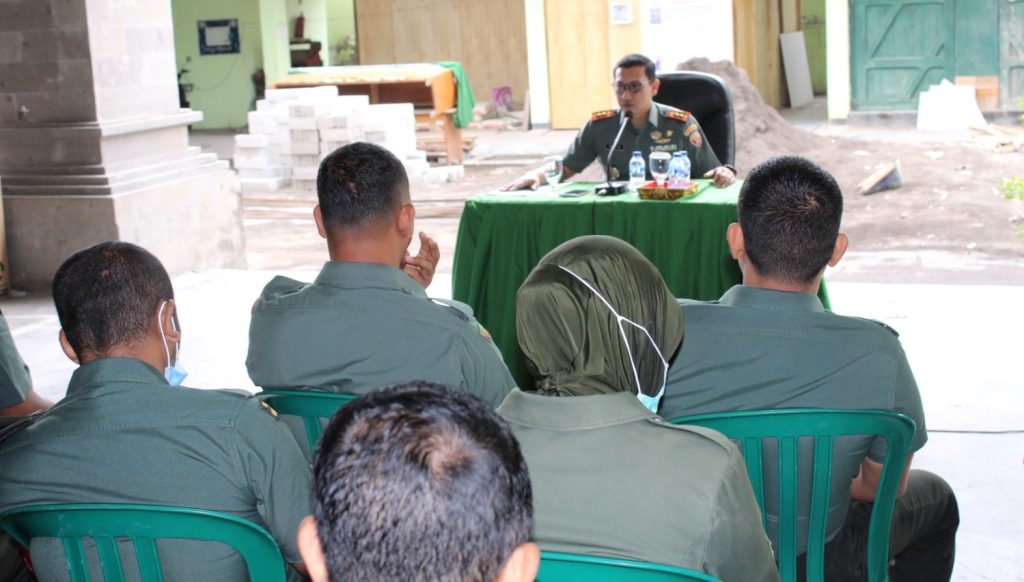 DENPASAR – Setelah pelaksanaan Upacara Bendera Komandan Kodim 1611/Badung Letkol Arh Teguh Waluyo, S.I.P., memberikan pengarahan dan beberapa penekanan kepada seluruh anggota Makodim serta Koramil jajaran baik Militer maupun PNS.