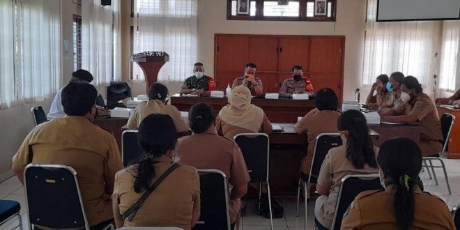 Denpasar ~ Danramil 1611-07/Denbar Mayor Inf Ida Bagus Suwartama menghadiri Rapat Koordinasi dalam rangka pengamanan perayaan Natal 2021 dan Tahun Baru 2022 rapat koordinasi tersebut dihadiri oleh Camat Denbar IB. Made Purwana Sara, SSTP., Msi. Kapolsek Denbar di Wakili Wakapolsek AKP I Made Darta. Lurah / Kades se Kec. Denbar, Kepala Puskesmas Denbar 1, Kepala Puskesmas Denbar 2 bertempat di ruang pertemuan Kantor Camat Denbar,Kota Denpasar. Senin (20/12/2021).