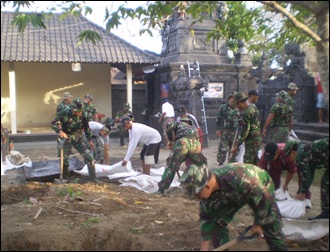 Koramil 1611-04/Mengwi , Pada hari Minggu Tgl. 18 januari 2015, Pukul 07.00 wita bertempat di Pura Ibu Gusti Celuk Kel. Kapal-Kec.Mengwi, Telah dilaksanakan karya Bakti bersama masyarakat setempat