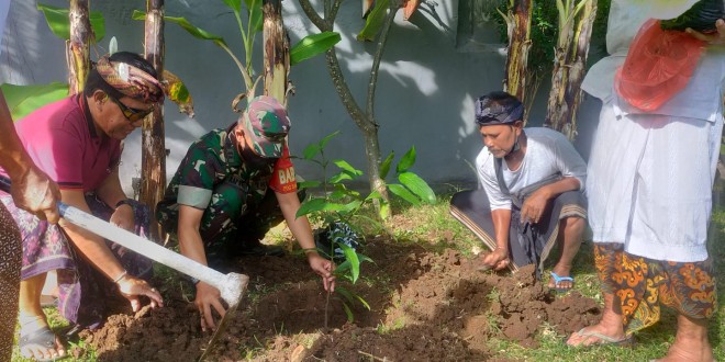 Kita juga melaksanakan penanaman pohon yang langka seperti Juwet, Sentul, Mundeh dan Pohon Badung di sekitar areal Pura agar kelestarian lingkungan tetap terjaga. Ucap Babinsa