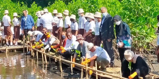 Denpasar – Babinsa Koramil 1611-02/Densel Pelda Alfonsius Seran memantau kegiatan Launching Penanaman 10 Juta Pohon Aksi Nyata Revolusi Mental dan Penanaman Mangrove dalam Rangka Kegiatan GPDRR ke-7 Tahun 2022 di Wilayah Prov Bali oleh peserta GPDRR dan undangan sekitar 200 orang bertempat di Taman Inspirasi Muntig Siokan Pantai Besar Mertasari Desa Intaran Sanur kauh Kec Denpasar Selatan Kota Denpasar.Selasa(24/05/22).