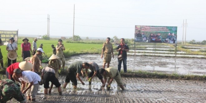 ketahanan pangan biaung1Pada Hari Selasa tanggal 9 Juni 2015 pukul 08.00 wita bertempat di Subak Biaung Desa Kesiman Kertalangu Kec. Denpasar Timur telah dilaksanakan penanaman padi dalam rangka program ketahanan pangan Kodim 1611/Badung TA. 2015 hadir pada kesempatan tersebut Dandim 1611/Badung, Walikota Dps diwakili oleh Kadistan Kota Denpasar, Kapolsek Dentim, Camat Dentim, Kades Kesiman Kertalangu, PPL se-Kota Denpasar, Pekaseh Desa Kesiman Kertalangu dan Petani Subak Biaung. Hadir jumlah 150 orang.