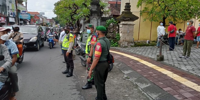 Denpasar – Dalam rangka menerapkan disiplin Protokol Kesehatan (Prokes) di masyarakat, Kodim 1611/Badung Melalui Jajarannya Koramil 1611-02/Densel Bersama 3 Pilar melaksanakan kegiatan patroli pendisiplinan prokes Covid-19, pemberlakuan pembatasan kegiatan masyarakat (PPKM) level 2 dalam rangka menekan penyebaran Covid -19 di wilayah Koramil 1611-02/Densel yang bertempat di Pertigaan Jln Dukuh sari Br Lantang Bejuh Kel Sesetan Kec. Densel Kota Denpasar, Kamis (07/04/2022)