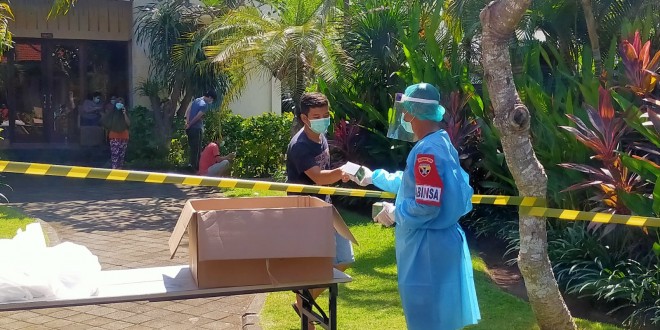 KODIM 1611/BADUNG DISTRIBUSIKAN PAKET OBAT COVID 19 KE MASYARAKAT ISOLASI TERPUSAT (ISOTER) DAN ISOLASI MANDIRI (ISOMAN)