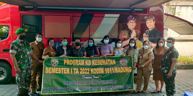 Badung – Kodim 1611/Badung menggelar kegiatan Program KB (Keluarga Berencana) Kesehatan, Semester I TA. 2022 yang bertempat di Aula Kantor Camat Kuta, Kab. Badung, Senin (09/05/22).