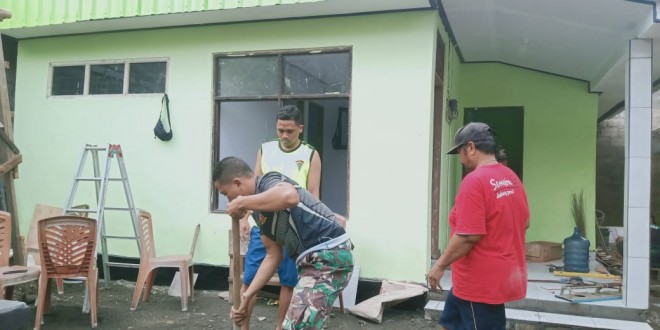 Tampak dilokasi pengerjaan diawasi langsung oleh Kapten Inf Cipto Sujoko Danramil 1611-01/Dentim, dengan tujuan mengawasi secara langsung tahap pengerjaan dalam pembangunan dan perehapan Rumah dilokasi RTLH, yang mana pengerjaan yang telah dilakukan oleh para Babinsa mulai dari tanggal 6 Februari 2023 dan diharapkan selesai tanggal 28 Februari 2023 sudah dapat dirampung serta akan langsung diserahkan kepada pemilik Rumah.