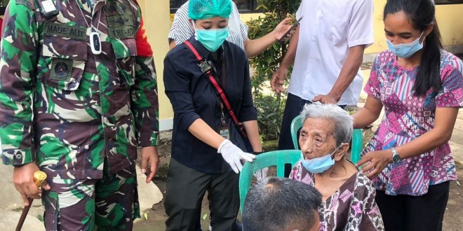 Denpasar – Dalam rangka mempercepat serbuan Vaksinasi Massal di wilayah Kota Denpasar dan sebagai upaya memutus rantai penyebaran Covid-19, Dandim 1611/Badung, Kolonel Inf I Made Alit Yudana, memantau langsung pelaksanaan Vaksinasi Puluhan orang lanjut usia (lansia) di Panti Sosial Tresna Werda (PSTW Wana Seraya), Kesiman Kertalangu, Denpasar Timur mengikuti vaksinasi Covid-19 yang digelar Kodim 1611/Badung.