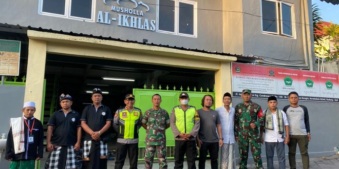 BADUNG – Personel Koramil-03/Kuta Kodim 1611/Badung yang dipimpin langsung  Danramil-03/Kuta Mayor Arm Putu Arimbawa bersama Instansi terkait melaksanakan pengaman Sholat Idul Fitri 1444 H bertempat di Mushola Al-Iklhas Jln. Intan permai Gg Cendrawasih No. 198, Banjar. Pengubengan Kangin  Kelurahan. Kerobokan Kelod, Kec. Kuta Utara, Kab. Badung. Sabtu (22/04/2023).