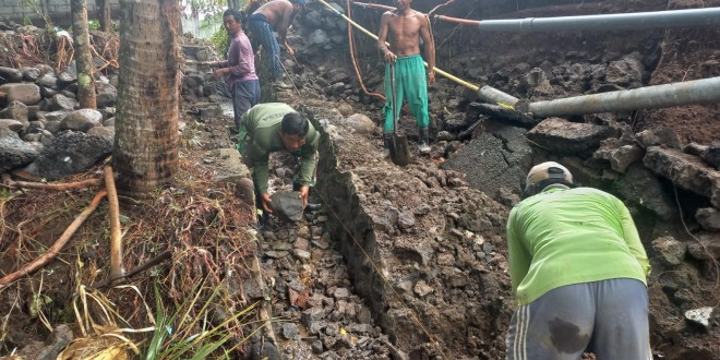 BADUNG – Pasca banjir dan longsor yang diakibatkan curah hujan tinggi senin kemarin Koramil 1611-04/Mengwi yang dipimpin langsung oleh Danramil 1611-04/Mengwi Mayor Inf M. Sutopo bersama warga melaksanakan pengecekan serta gotong royong pembersihan di jembatan cengkok dan sekitarnya bertempat di Desa Baha, Kec. Mengwi, Kab. Badung. Selasa (18/10/22).