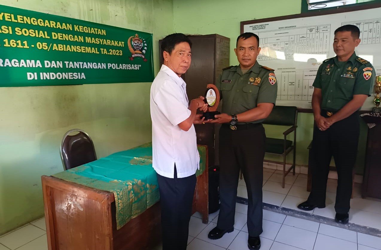 Penyerahan Plakat oleh Danramil 1611-05/Abiansemal kepada Kasi Pem Desa Blahkiuh(Heri/PB)