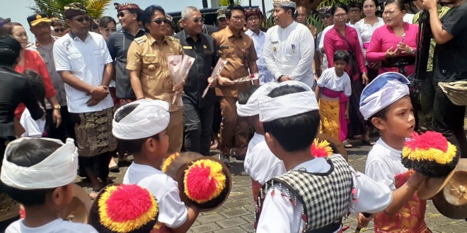 Saat penyerahan penyerahan Bantuan Keuangan Khusus (BKK) kepada Desa Se-Kecamatan Abiansemal oleh Bupati Badung didampingi oleh Ketua DPRD Badung dan Camat Abiansemal serta dilanjutkan dengan Penanda tanganan prasasti TPS-3R oleh Bupati Badung.