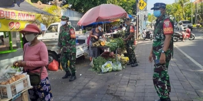Badung – Dalam rangka menerapkan disiplin Protokol Kesehatan (Prokes) di masyarakat, Kodim 1611/Badung melalui jajarannya Koramil 1611-08/Kuta Selatan melaksanakan kegiatan pendisiplinan prokes Covid-19, pemberlakuan pembatasan kegiatan masyarakat (PPKM) level 3 dalam rangka menekan penyebaran Covid -19 Pasar tradisional Taman Griya. Kelurahan Jimbaran, Pasar tradisional Alas Kesuma Kel. Jimbaran, Mall Side Walk Jl. Raya Uluwatu Kel. Jimbaran,Pasar Moderent CoCo Mart Jl.Taman Giri Jimbaran.Kab. Badung Minggu 5/3/2022