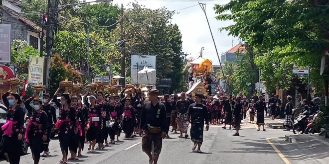 Saat pelaksanaan Pelda Gede Ribek bersama Bhabinkamtibmas dan pecalang memantau serta membantu kelancaran lalu lintas dalam pelaksanaan pemberangkatan jenazah Alm dari rumah duka menuju setra badung dengan menggunakan wadah dan di naikkan kereta dorong serta iring-iringan  ucap Babinsa.
