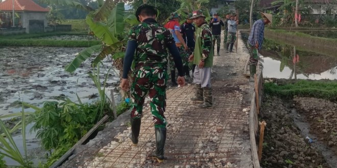 “Pada pengerjaan pembangunan Jalan Usaha Tani, Danramil 1611-05/Abiansemal menyampaikan tentang pekerjaan yang telah dikerjakan yakni berupa Progres pengerjaan s/d hari ini yakni pembukaan Badan Jalan di Utara Pura Cangana dan di Selatan Kuburan 880 M,pemasangan Pondasi sudah mencapai 1080 M, pembuatan Saluran Irigasi 50 M dan pembukaan Badan Jalan sepanjang 400 M”, terang Danramil.