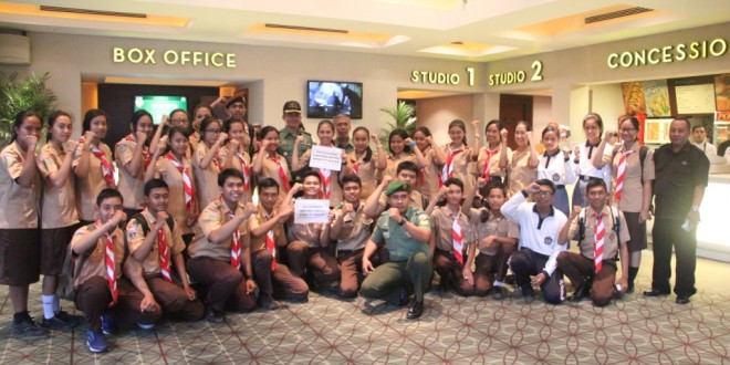 IMG_7580Pada Hari Senin tanggal 31 Agustus 2015 pukul 18.15 wita bertempat di Gedung Bioskop Galeria XXI Mall Bali Galeria Kelurahan Kuta Kabupaten Badung Kodim 1611/Badung bersama Pramuka Saka Wira Kartika Kodim 1611/Badung melaksanakan nonton bareng Film Panglima Besar Jenderal Soedirman. Hadir 55 orang.