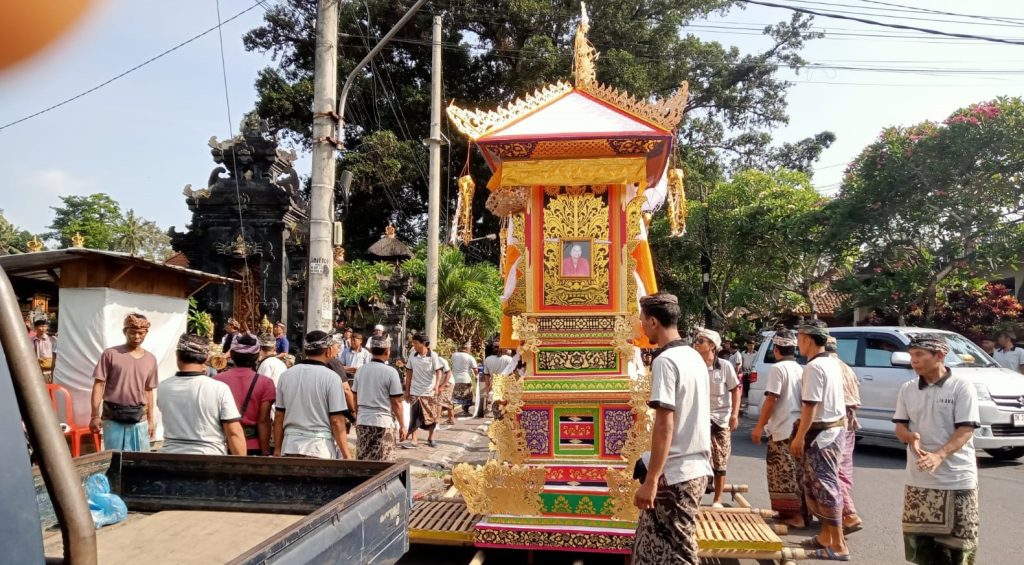 Saat dikonfirmasi Koptu Abdullah menerangkan upacara permandian jenasah secara simbulis dan upacara dipimpin oleh Ratu Peranda Griye Kuom Mambal, kemudian  jenazah di usung dari rumah duka dengan menggunakan bade, menuju setra adat Blahkiuh serta diiringi  gong beleganjur, ucap Babinsa.