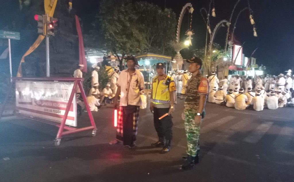 “Dalam hal ini Babinsa, Bhabinkamtibmas serta pecalang juga turut membantu dalam mengamankan jalanya kegiatan serta mengatur parkir agar terlihat tertib, rapi dan selalu mengingatkan untuk pengamanan kendaraannya masing-masing, tambahnya