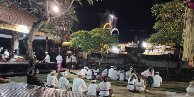 BADUNG – Babinsa Koramil 1611-05/Abs Kodim 1611/Badung Sertu Made Windia bersinergi dengan Bhabinkamtibmas dan pecalang memantau dan mengamankan persembhayangan bersama dalam rangka Upacara Piodalan bertempat di Pura Desa, Desa Adat Jagapati, Kec Abiansmal, Kab Badung. selasa (24/01/23). Sore