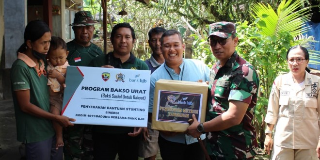 Badung – Berperan sebagai Bapak Asuh Anak Stuntung di wilayah Kabupaten Badung Dandim) 1611/Badung Letkol Teguh Waluyo, S.I.P., memberikan bantuan paket nutrisi tambahan kepada anak stuntung di wilayah Desa Darmasaba Kec. Abiansemal Kabupaten Badung, berupa makanan tambahan, beras, susu, biskuit dan telur dengan Tema “BAKSO URAT” (Bakti Sosial Untuk Rakyat). Sabtu (27/5/2023).