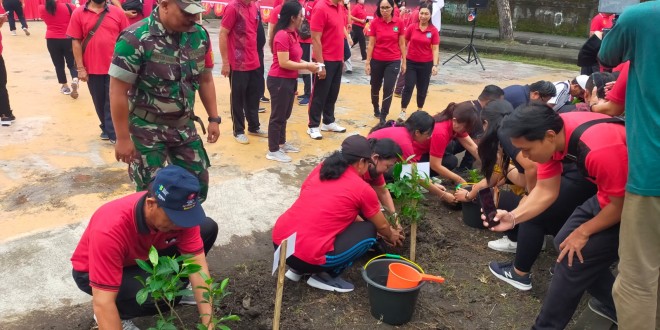 Dalam acara bulan bakti gotong royong masyarakat dengan melaksanakan penanaman pohon.