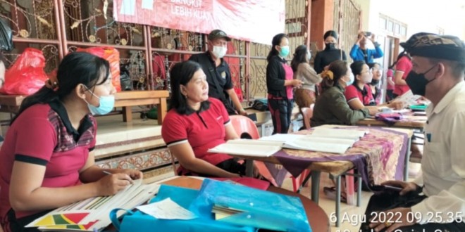 DENPASAR – Babinsa Koramil 1611-01/Dentim Peltu Made Arka bersinergi dengan Bhabinkamtibmas mendampingi petugas kesehatan dalam pelaksanaan posyandu yang di pantau langsung oleh PLT Perbekel Desa Peguyangan Kaja Bpk I Wayan Sudarma bertempat di Br.Blungsung Desa Peguyangan Kaja Kec.Denut Kota Denpasar. Sabtu (06/08/2022).
