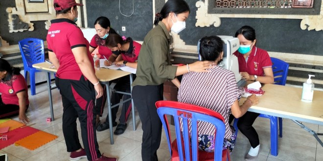 Danramil 1611-01/Dentim Kapten Inf Cipto Sujoko, melalui Peltu Made Arka mengatakan, kegiatan pemeriksaan kesehatan Lansia secara gratis yang digelar pihak RS. Bakti Rahayu Denpasar.